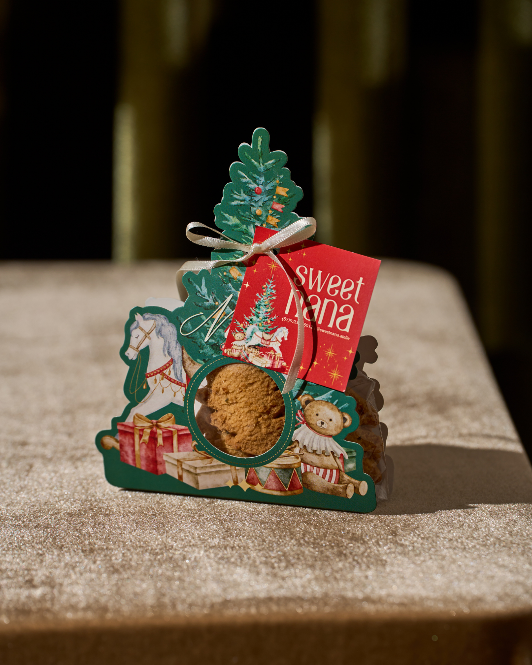Os Biscookies Natalinos da Sweet Nana unem o sabor amanteigado e irresistível dos nossos biscoitos com o aroma inconfundível do panettone ou do chocottone — em formato de árvore de Natal, cheios de charme e afeto.