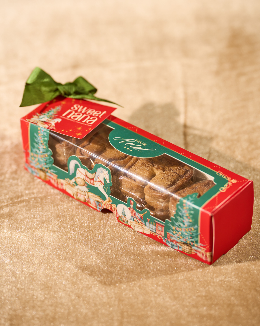 Acompanha uma linda caixa natalina com oito unidades, perfeita para presentear, partilhar e viver o espírito do Natal com doçura e afeto.